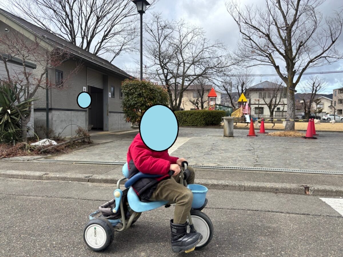 篠ノ井公園では自転車や三輪車に乗って、実際の信号機がある
