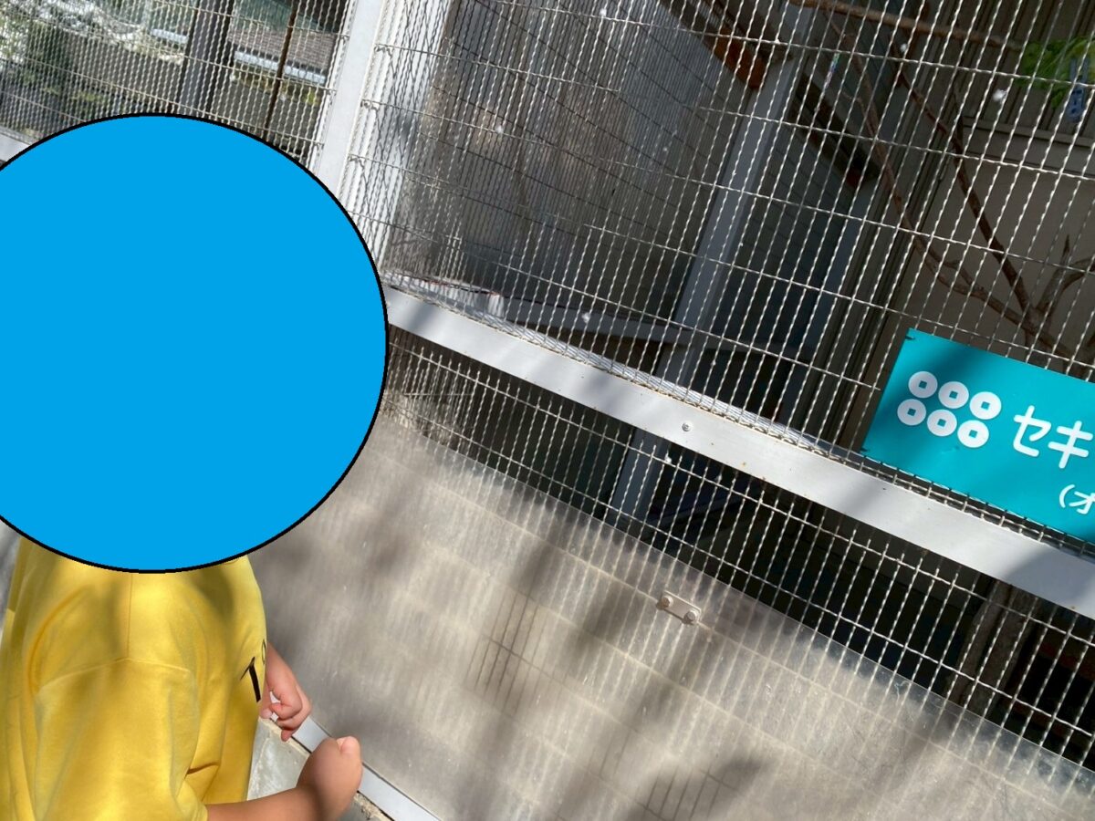 動物のオリを発見。何がいるんだろう、と覗き込むとそこにはインコがいました。