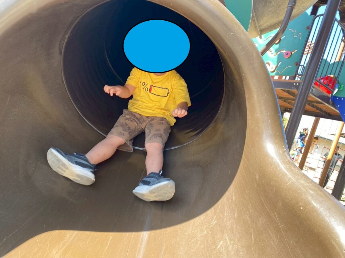 今日利用した児童はトンネル型の滑り台に大ハマり!