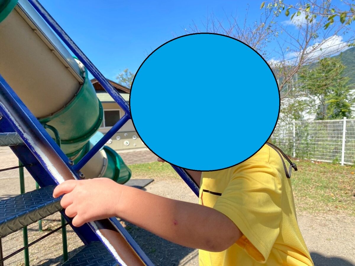 ニコニコと笑顔で滑り切り、また滑ろうと梯子まで向かっていきます。するとそこには…