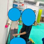 低学年の子は板を使わない代わりに、経路を塞いで挑戦。どこを通ればスムーズに行くか悩みながらトライしていました。全員が真剣に取り組んでいた活動でした。
