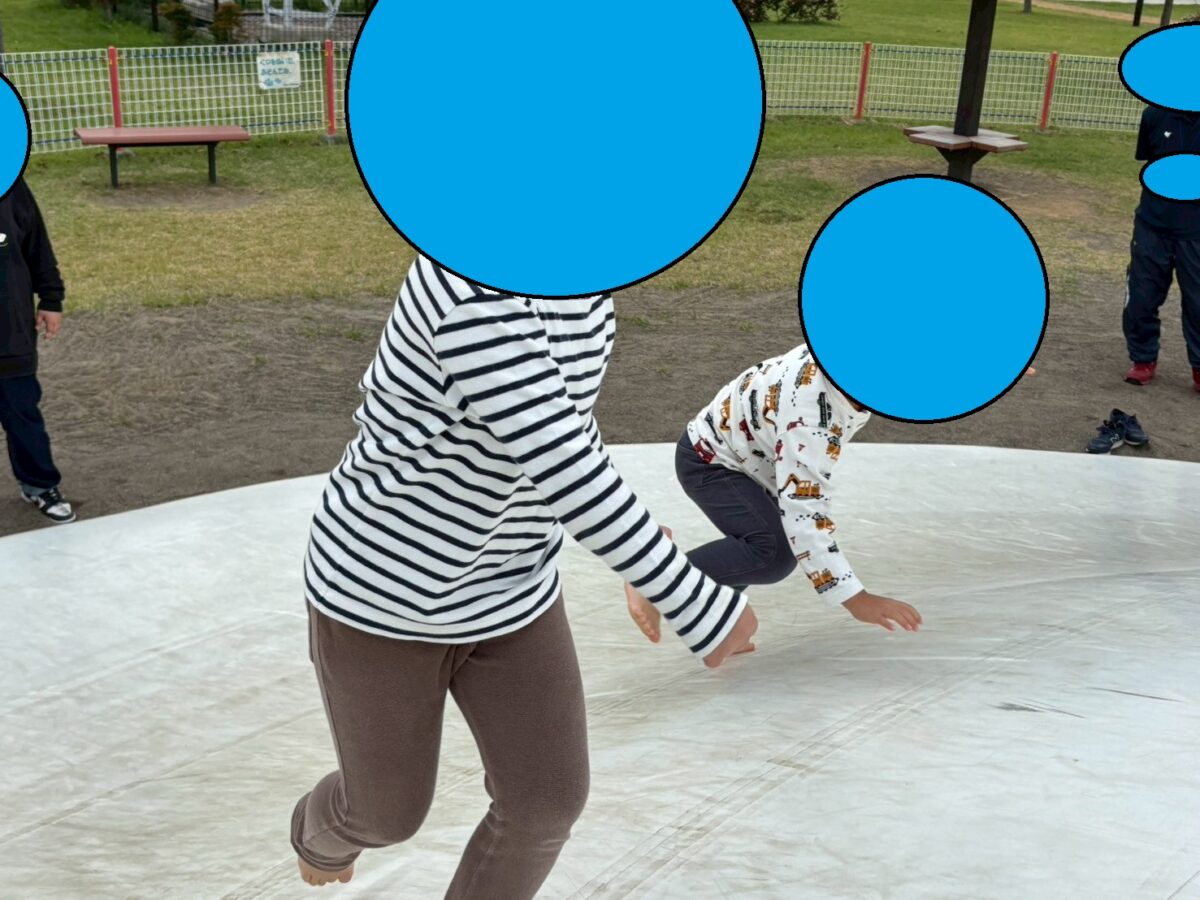 お友達と笑い合いあって飛び跳ねたり、斜面を下っていくことを楽しむ子どもたち。公園での時間のほとんどをトランポリンで過ごす子もいました。