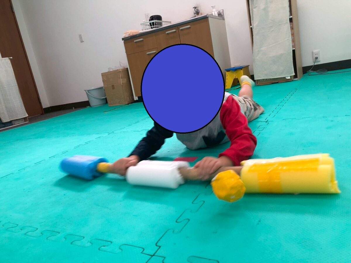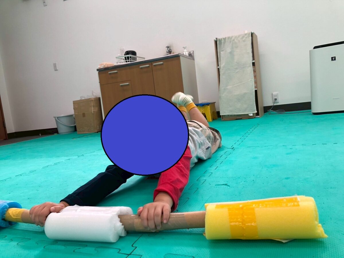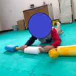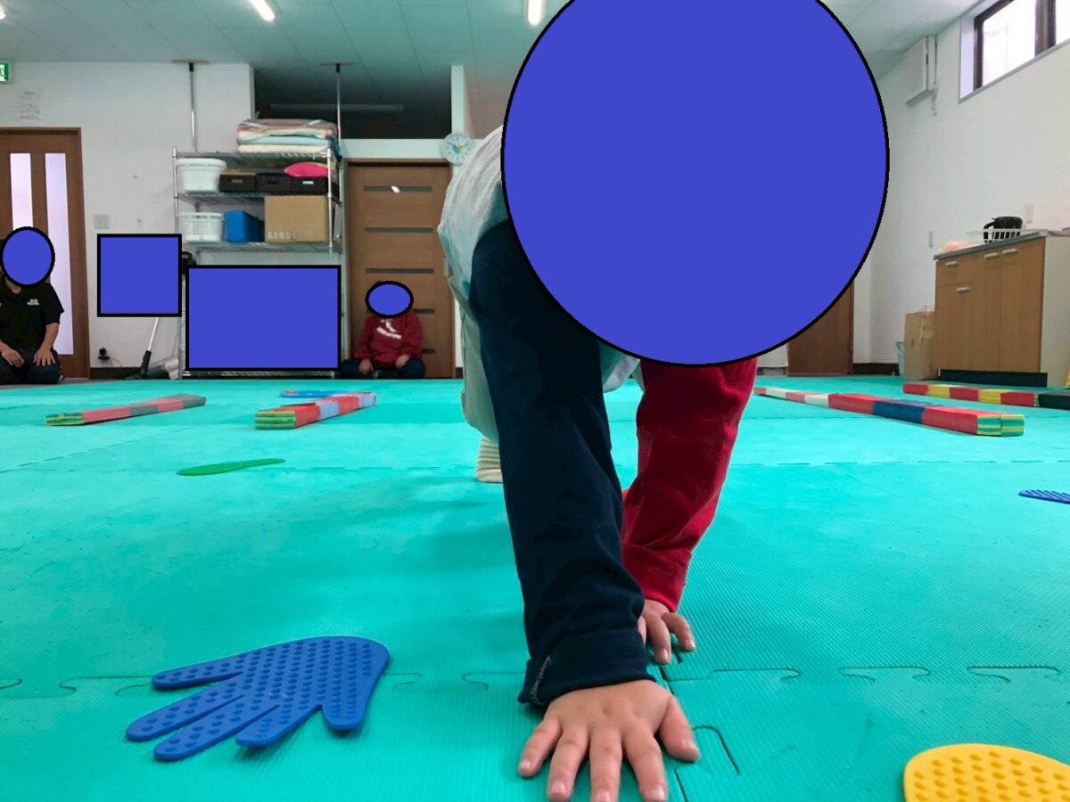 今週の児童発達支援の運動あそびは、”横歩きクマさん”&”カラーボールバッティング”です。