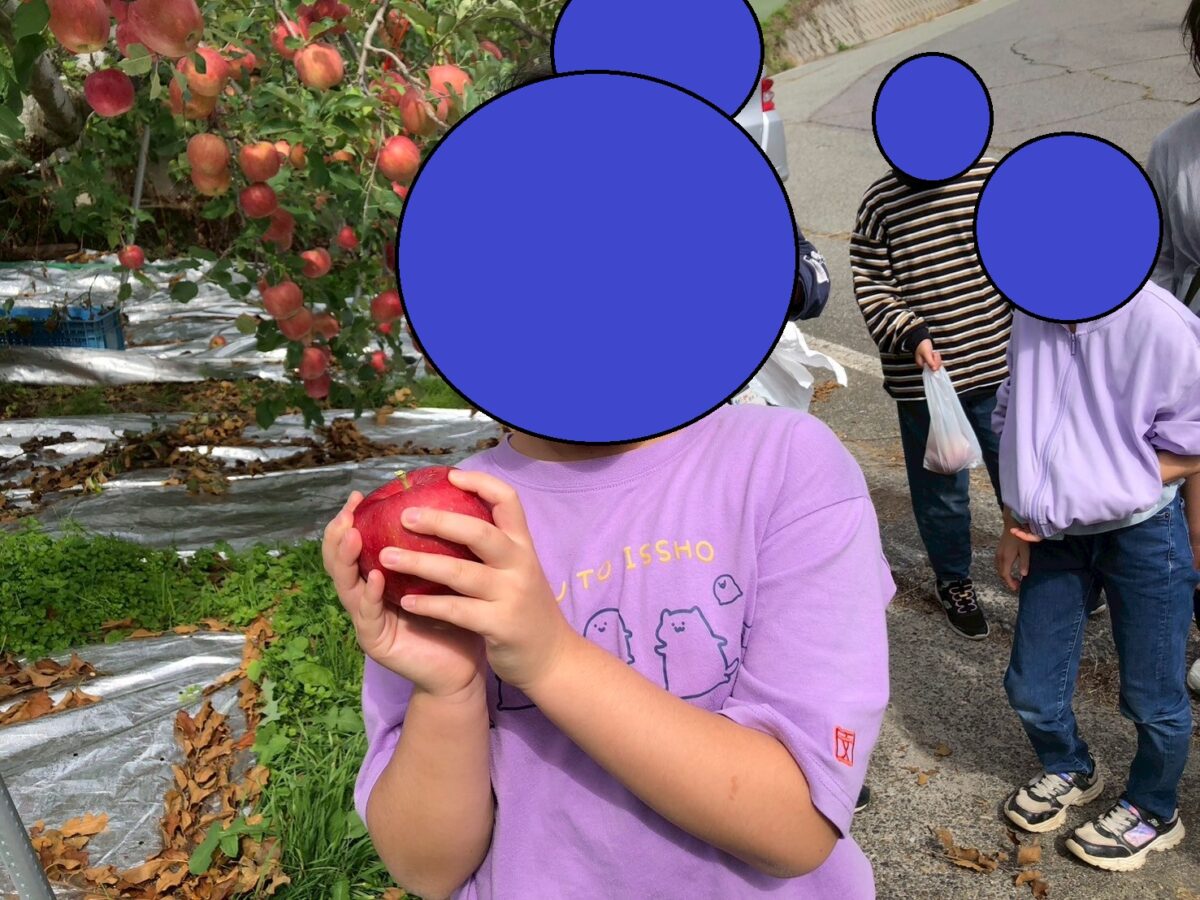 そして…少しだけ移動して、今度は「りんご狩り体験」へ。