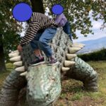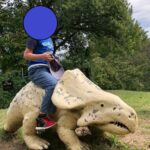 他にも見慣れない恐竜がたくさん。よじ登ってみたり、またがってみたり…。