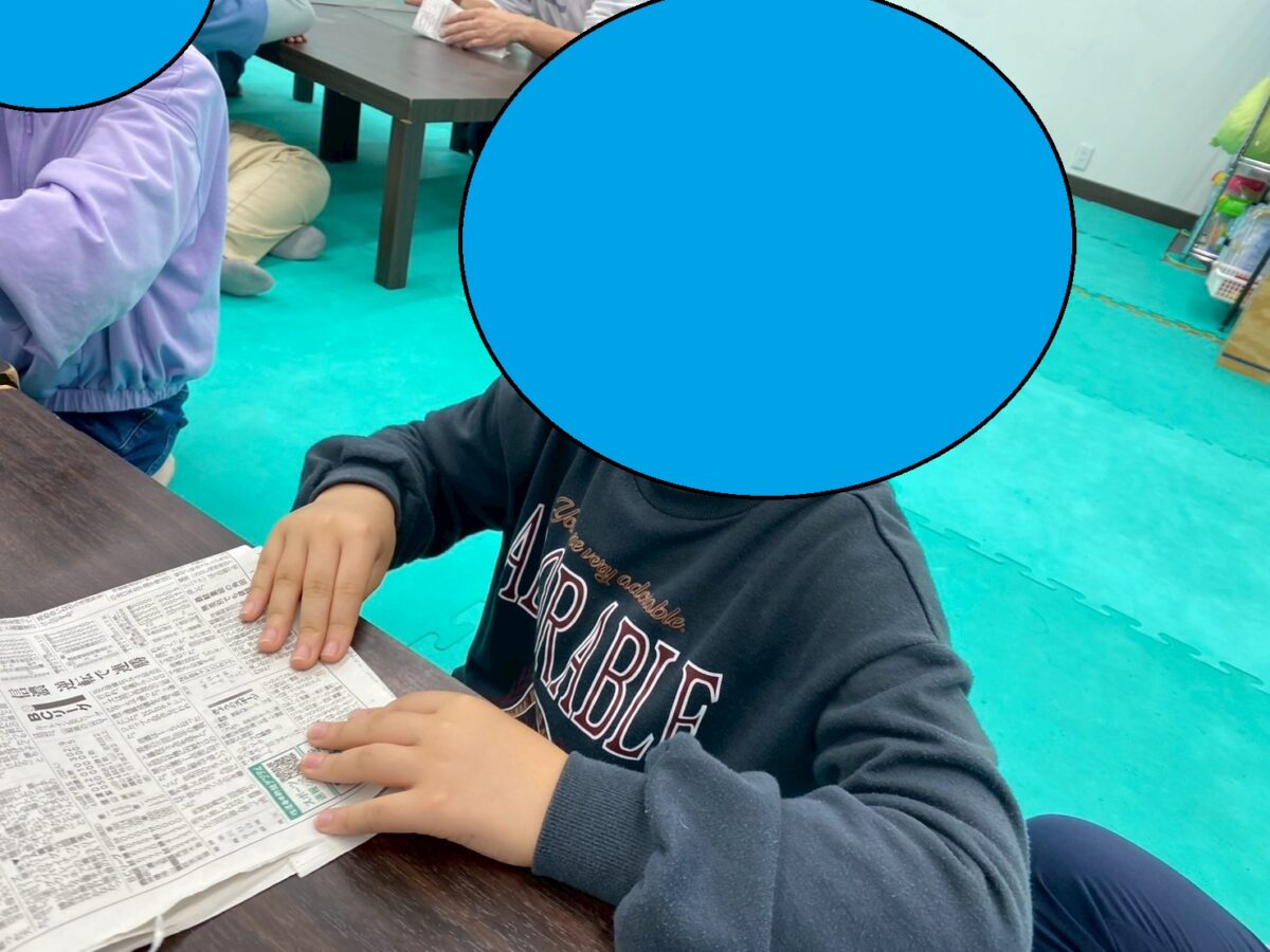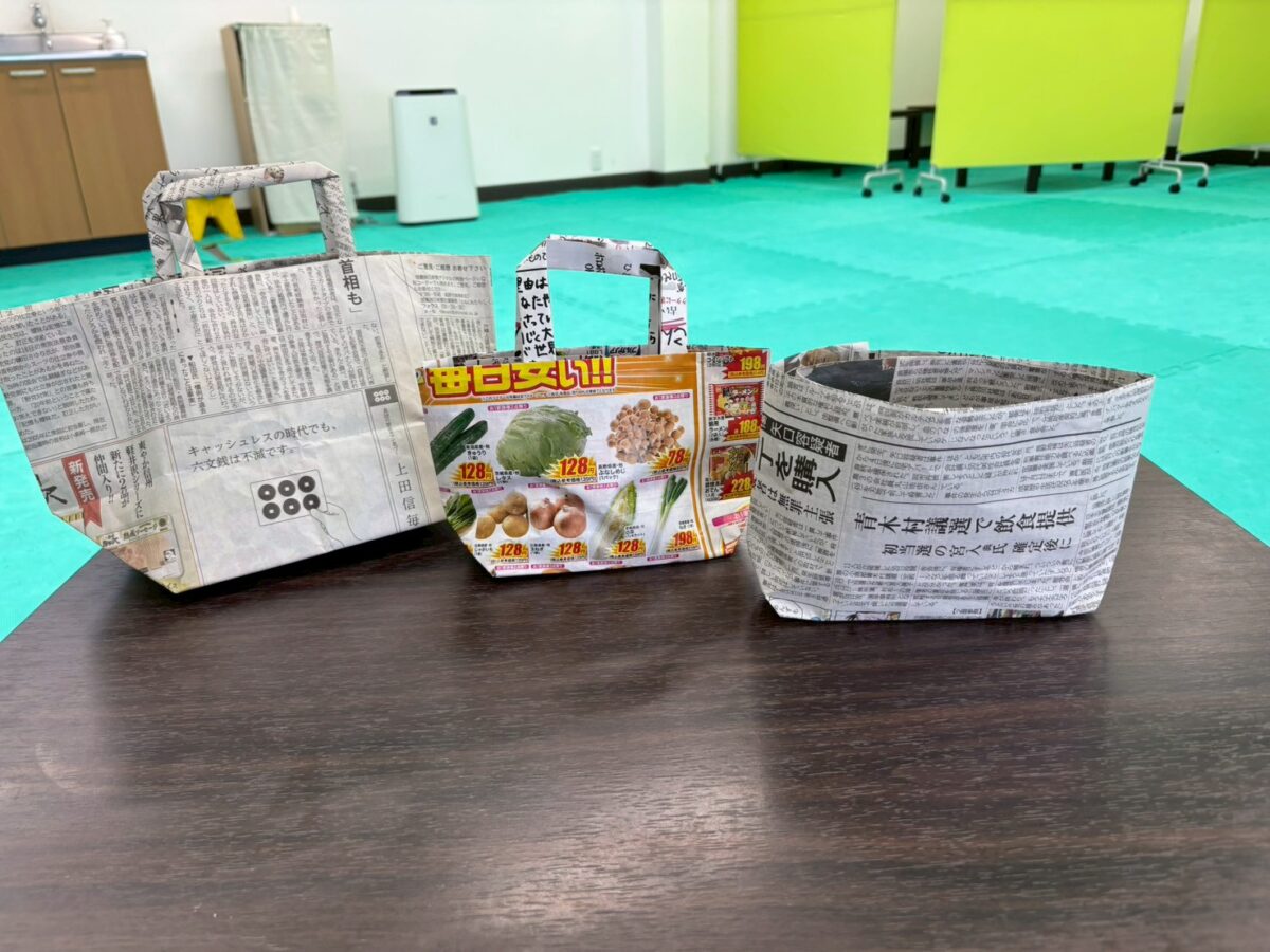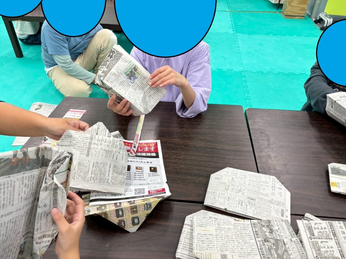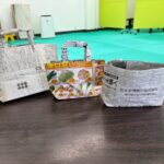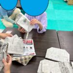今週は静かな活動の時間を利用して、新聞紙でバッグ作りをしています。