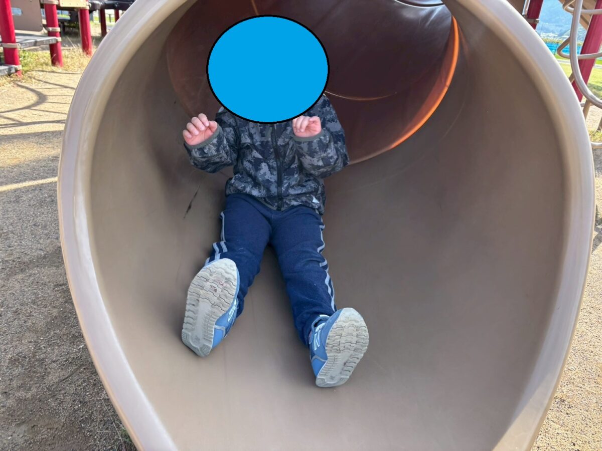 今日は弓なりに曲がった梯子を上って、筒状の滑り台を滑る…という組み合わせにはまり笑顔で繰り返し遊んでいました。