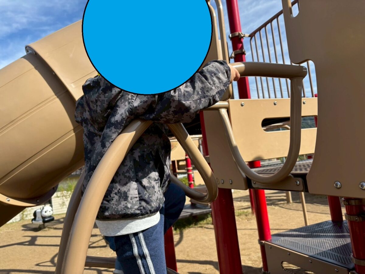 今日は弓なりに曲がった梯子を上って、筒状の滑り台を滑る…という組み合わせにはまり笑顔で繰り返し遊んでいました。