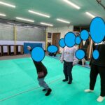 縄跳びで境界線が引かれており、スタッフの動かしたボールに合わせてどちらかへ飛んで移動します。
