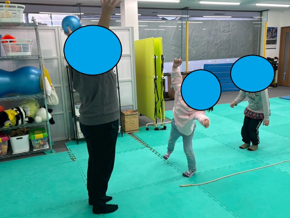 今週の運動遊びはボールの動いた方向にジャンプする運動遊び。
