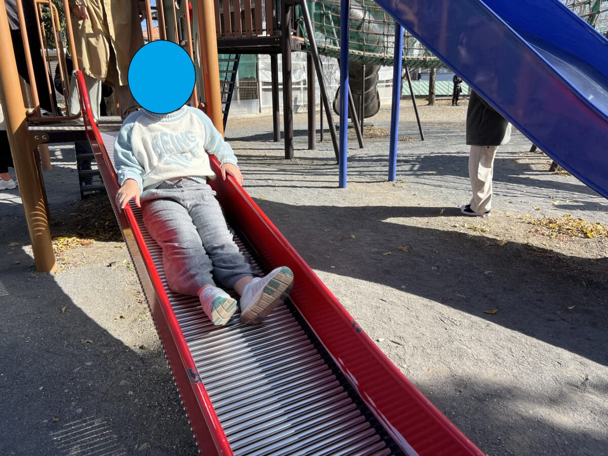 大きな滑り台はスピードが出るので、中くらいの滑り台や、お山の遊具が楽しかったようです。
