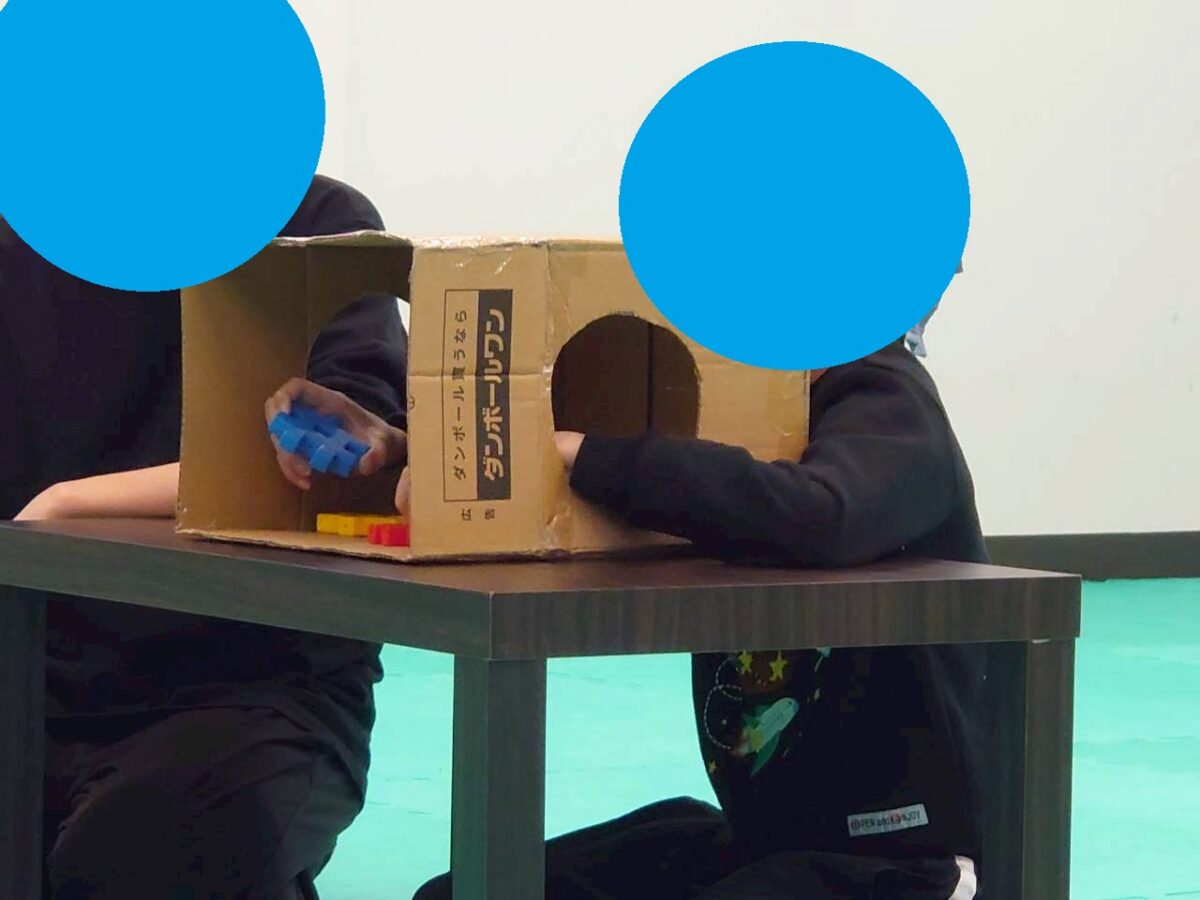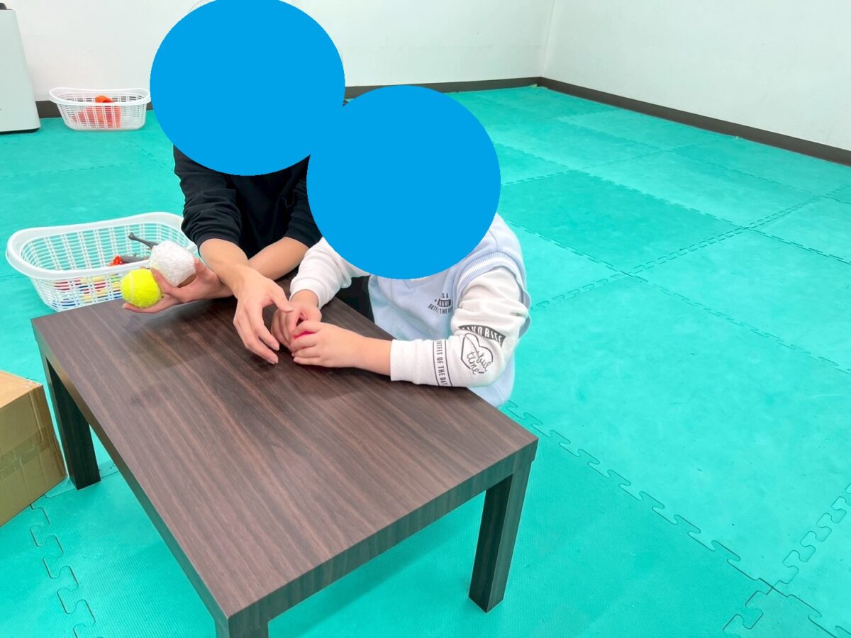今週の運動遊びは「箱の中身はなんだろな」。意味はそのまま、手を入れて箱の中身を当てていくという内容です。