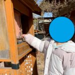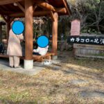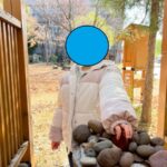 伝説の「しあわせの赤い石」がすぐそばにあり、「つるつるだね~」と何度も触っていました。