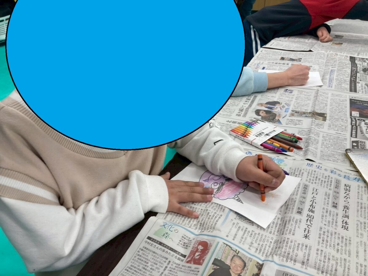 塗ってもらうイラストは鬼!ただ色を塗るだけではなく、子どもたちの「心の中にいる鬼」を書いてもらいます。