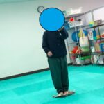 新聞の大きさに合わせて、片足立ちになったりして最後まで残れるように努力する姿が見られました”(-“”-)”