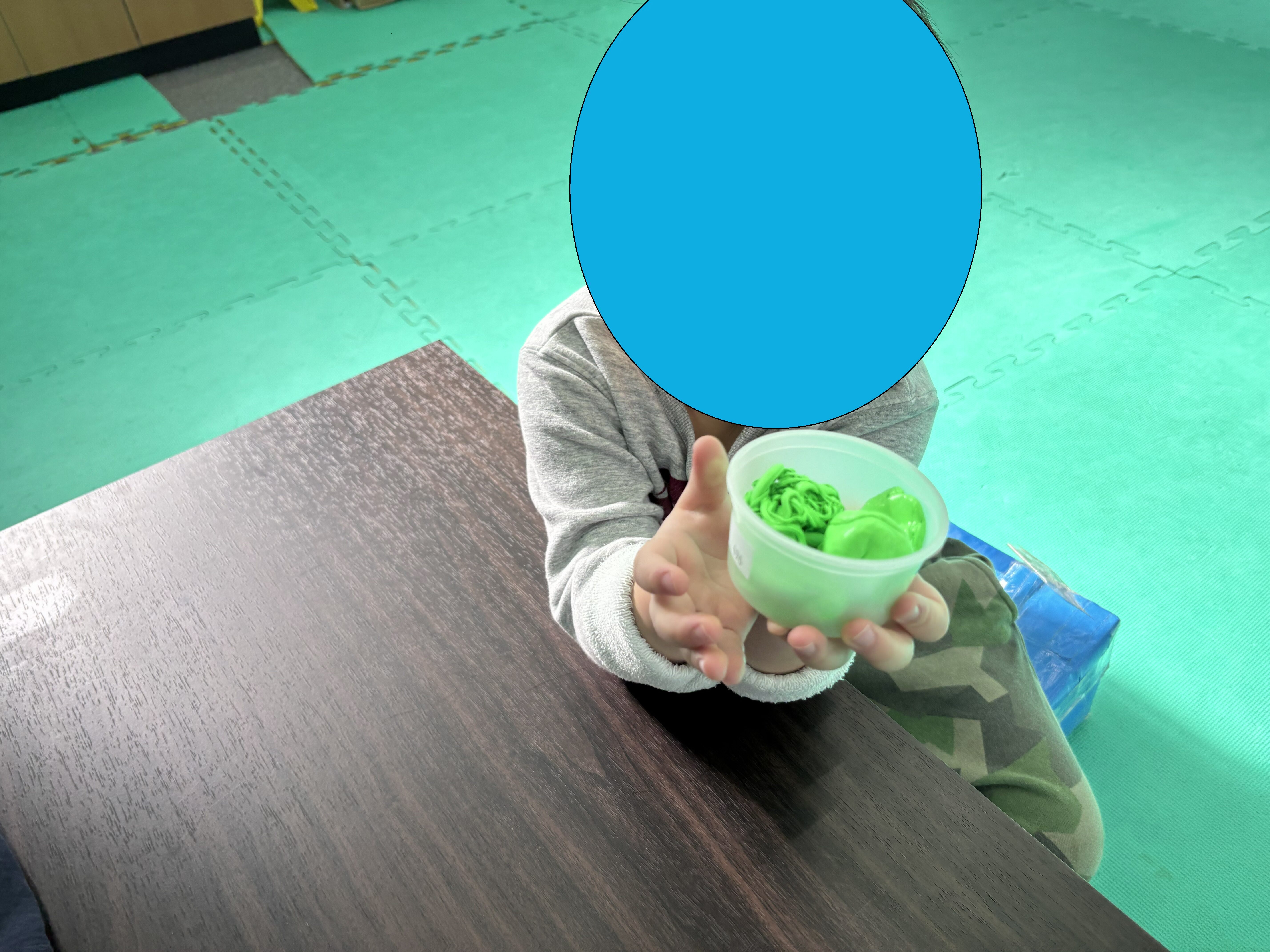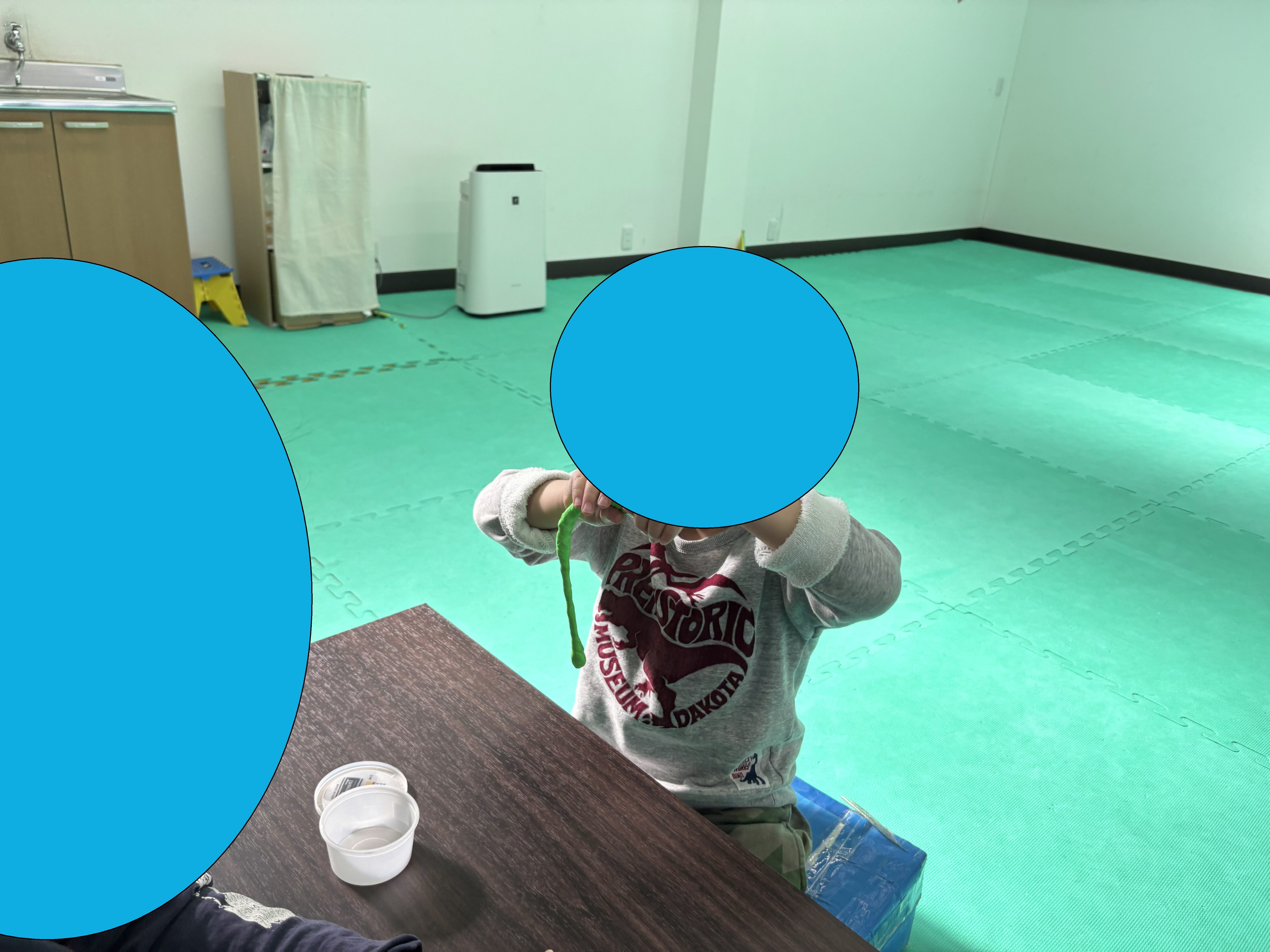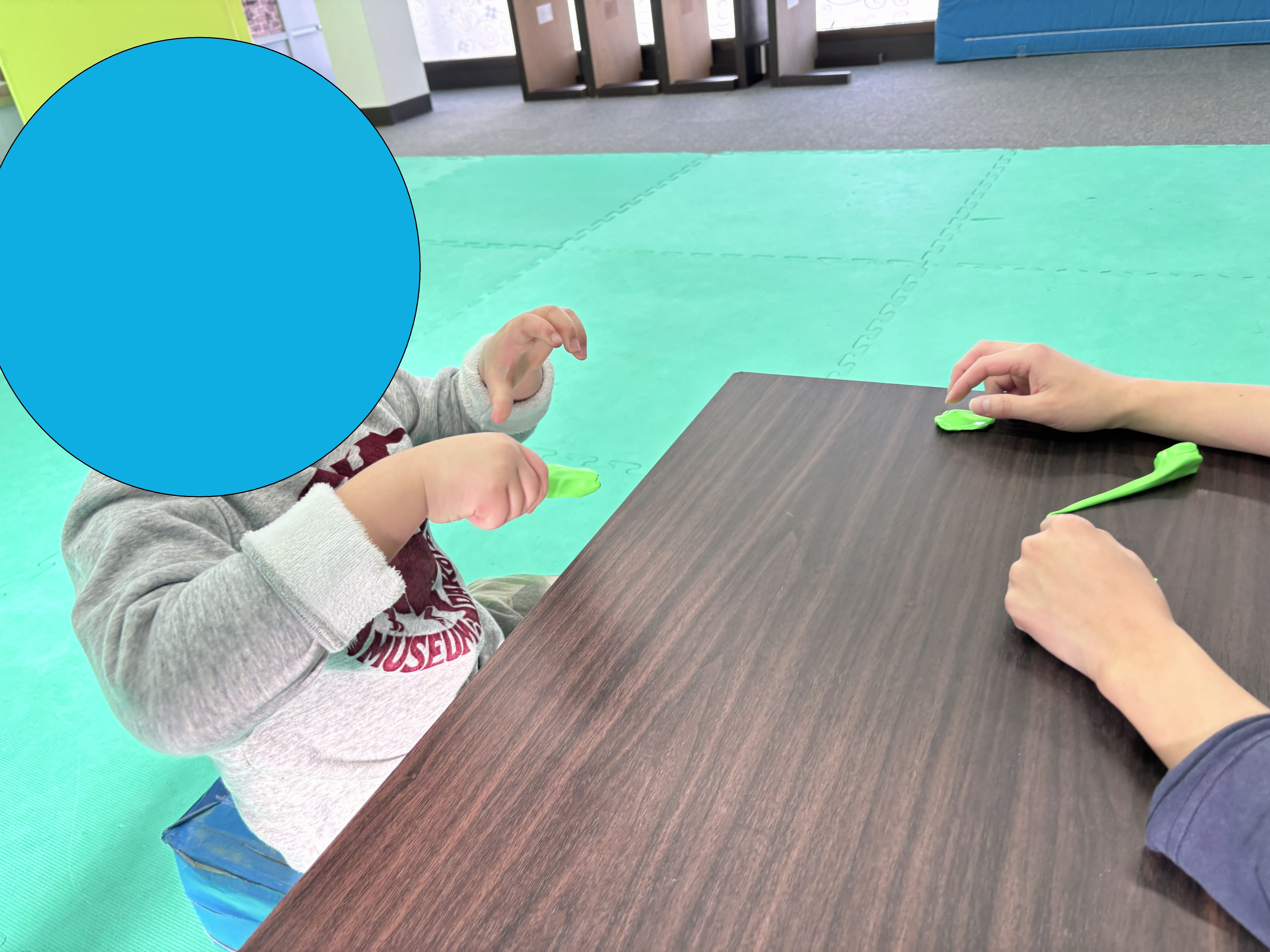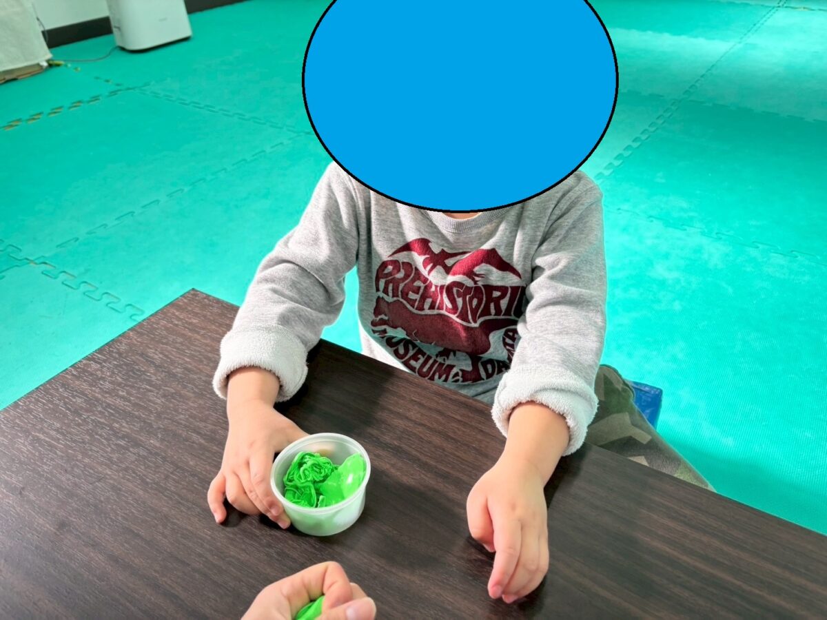 みょーん、と細長く伸びるセラパテ。その様子をみて「ラーメンみたい!」とつぶやきます。実は今日利用した児童発達の子はラーメンが大好き!