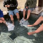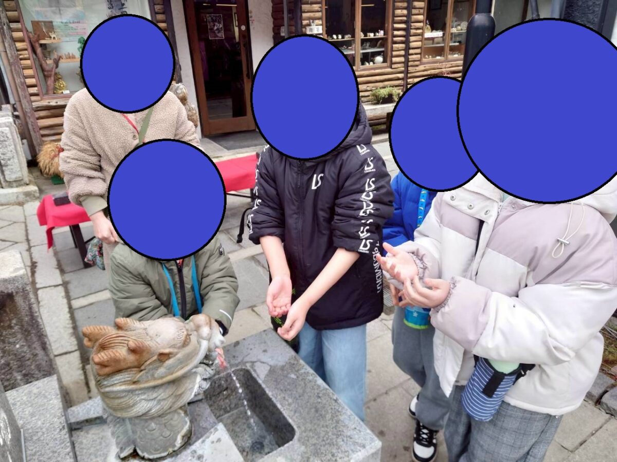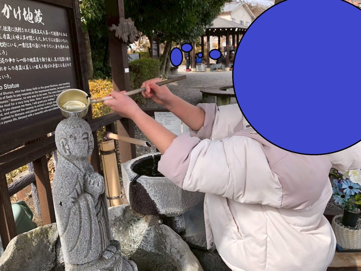 お地蔵さんにお湯をかけて、自分たちもゆっくり足を温めます。
