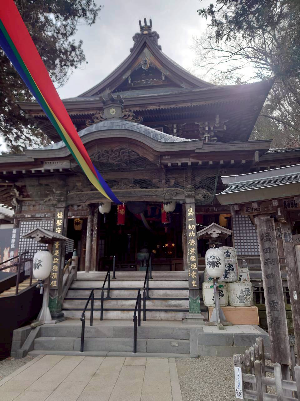 ちょうど北向観音は御開帳中の様子。本堂の前には回向柱が建っていました。