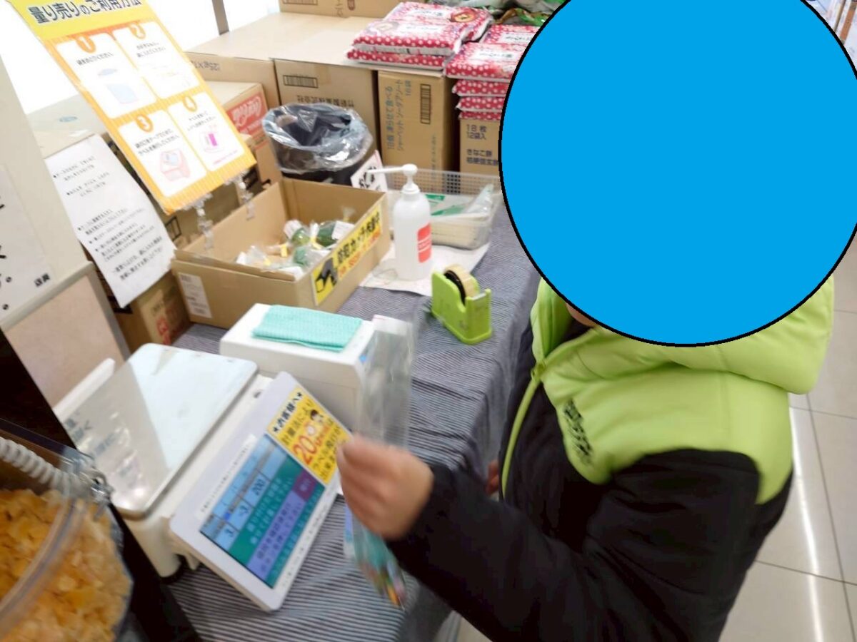 値札を張れたらお会計!「お願いします…!」と少し緊張した様子で店員さんに商品を差し出し…