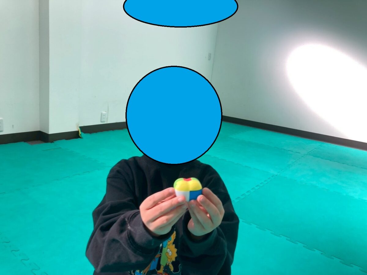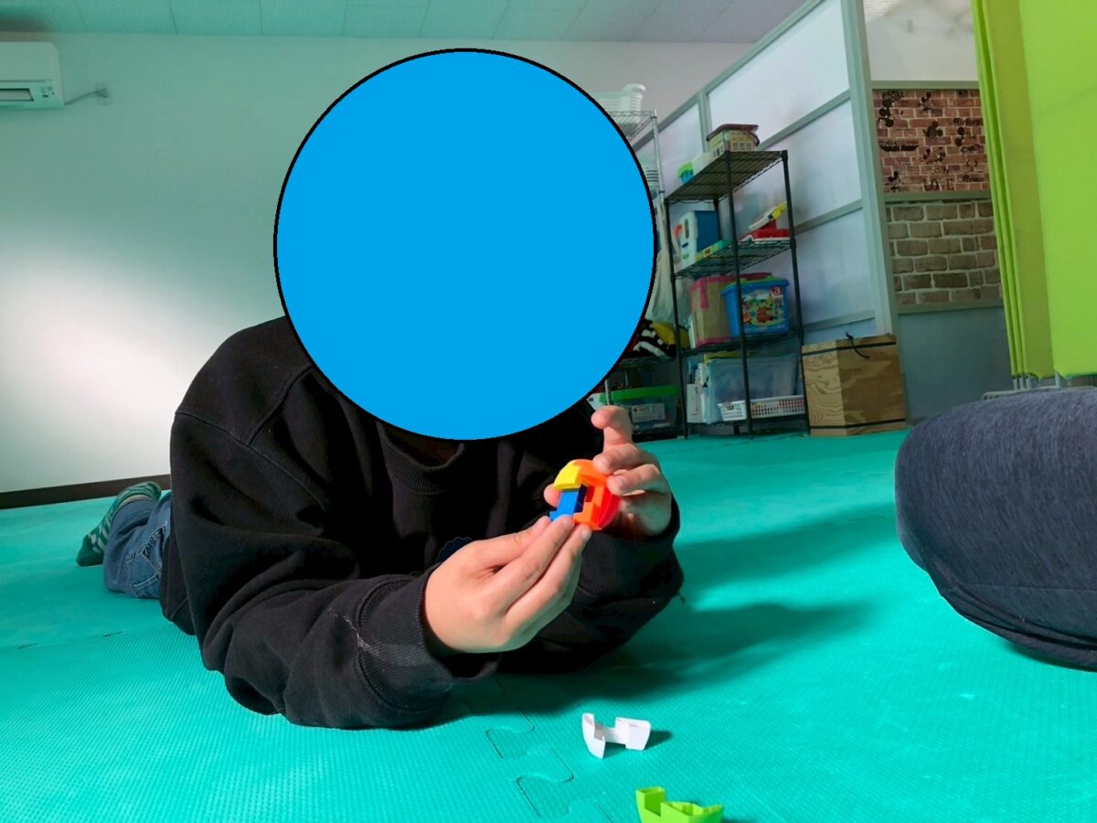 スタッフが代わりに取り組もうとすると「ひらめ”つ”いた!」と言って再度挑戦!