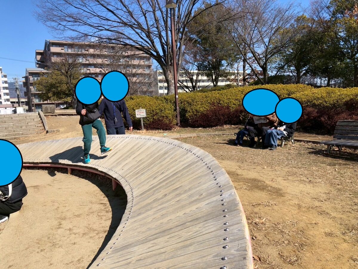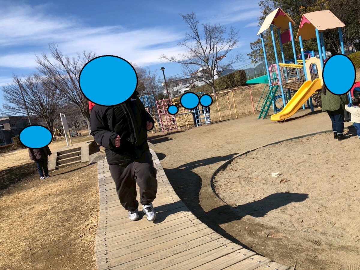 斜めに傾いたこの線路の上を全速力で走ったり、「落ちそう!うわぁ!」と言いながらじっと耐えたりと、やりたいことを見つけながら楽しめていました。