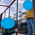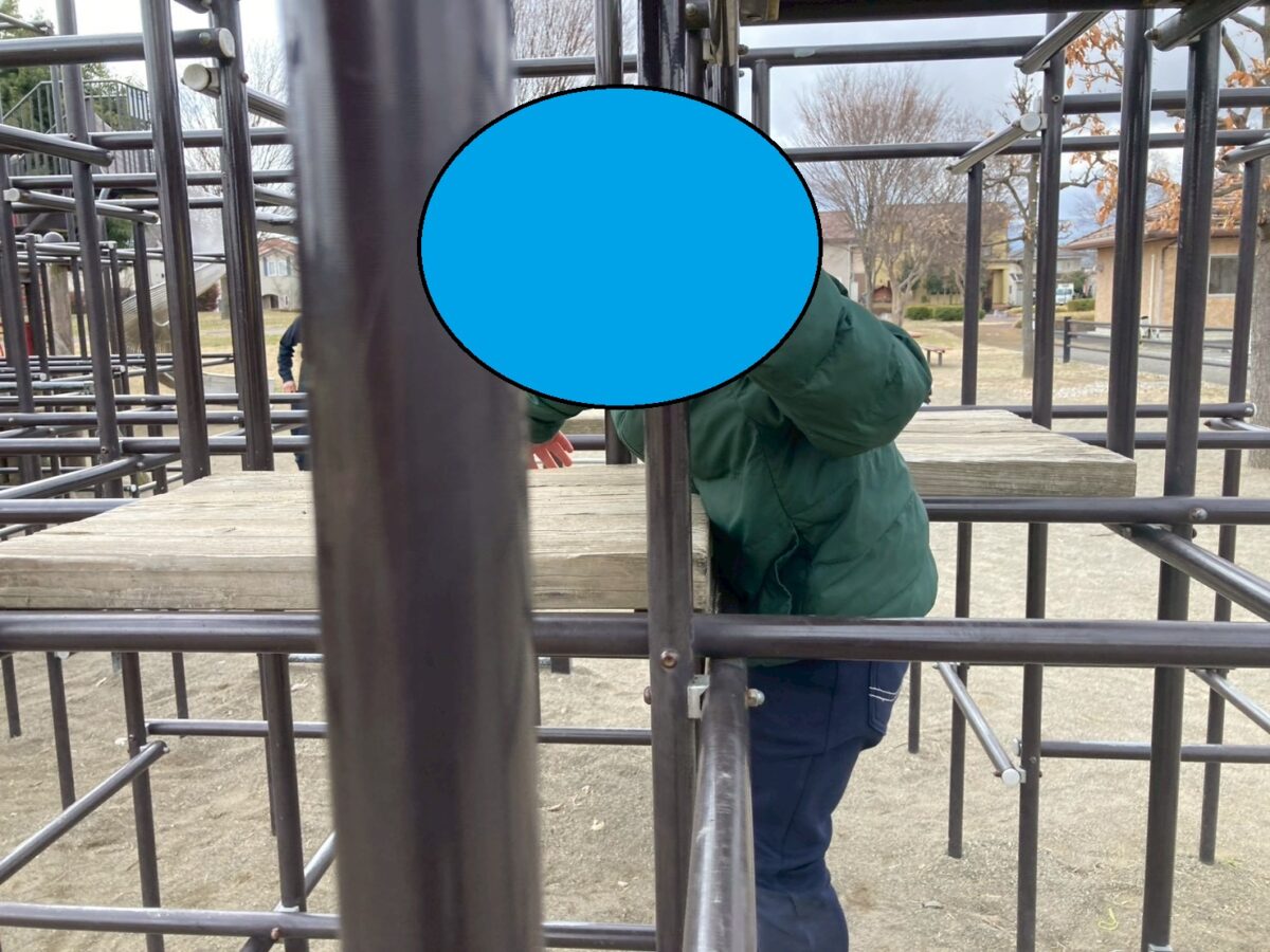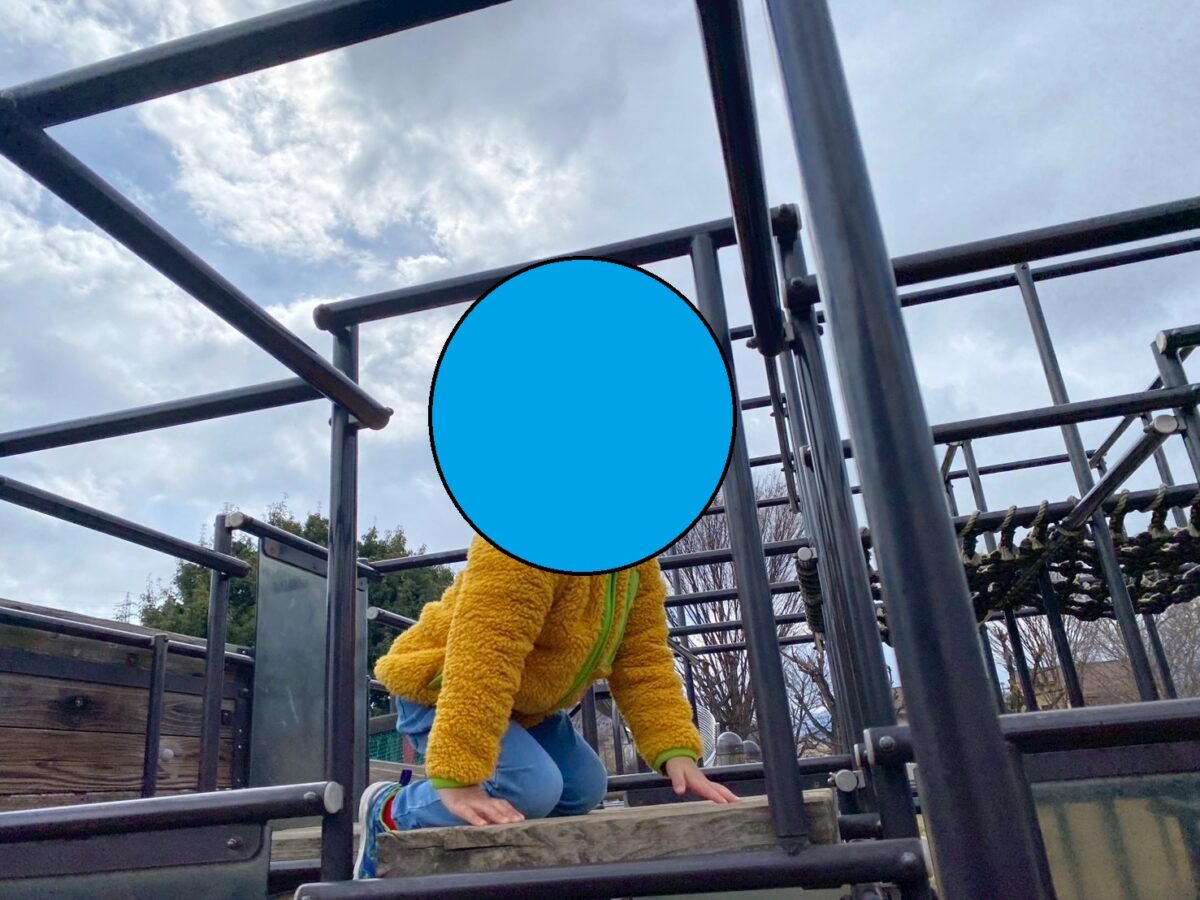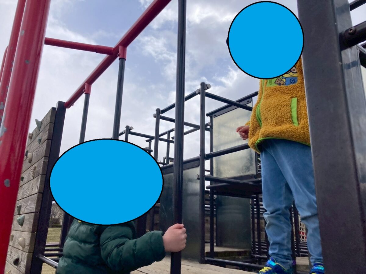 ここはボルダリングや雲梯など、体幹を使った遊具が多い公園。今回も子どもたちが最初に向かったのはジャングルジムでした。
