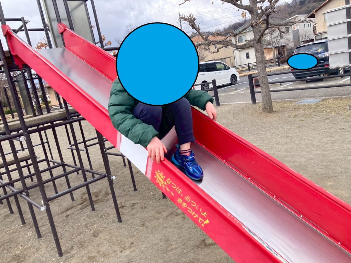 頂上には滑り台の入り口が!登りきれた達成感もあってか、子どもたちは笑顔で滑っていました(*^_^*)