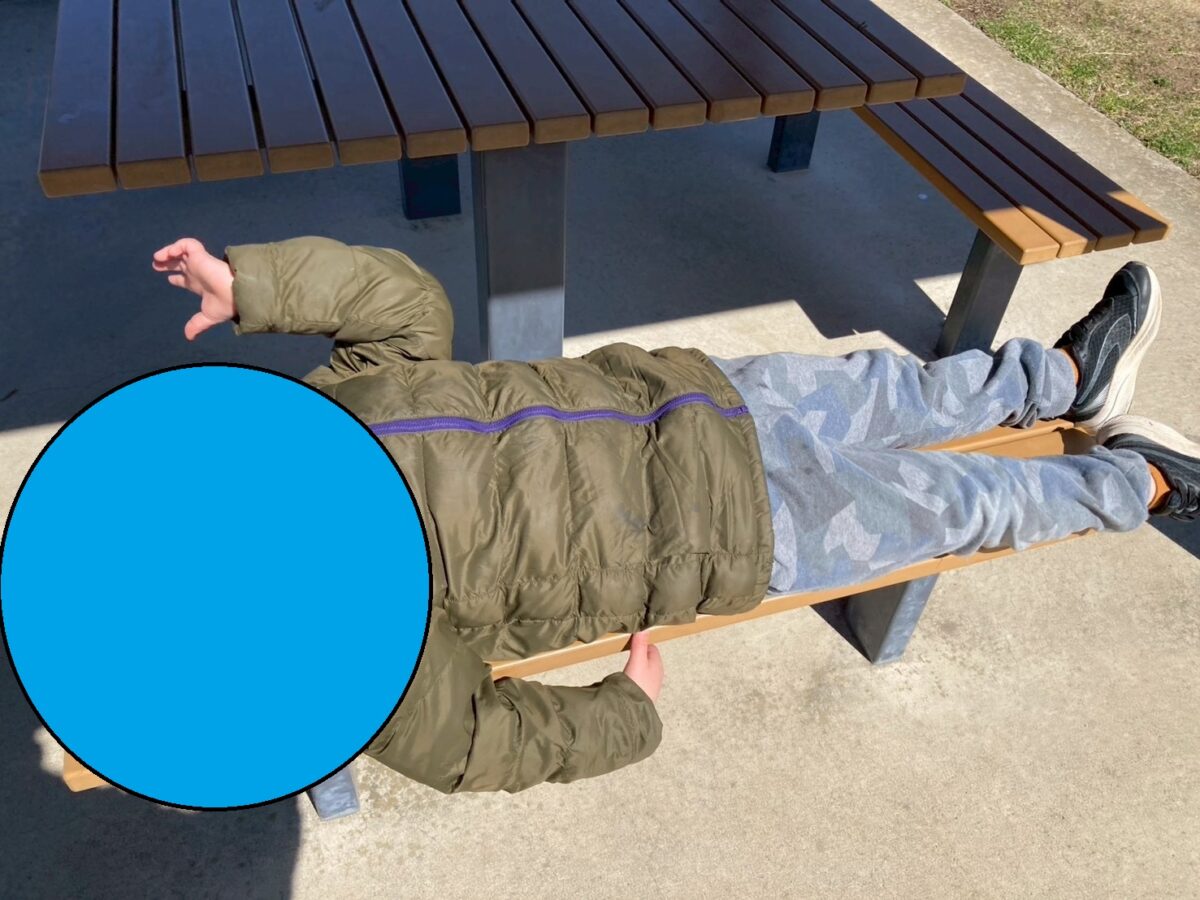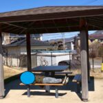東屋!そこでベンチに横になって、「ふぅ…疲れた…」とゆっくり過ごしていました(;^ω^)