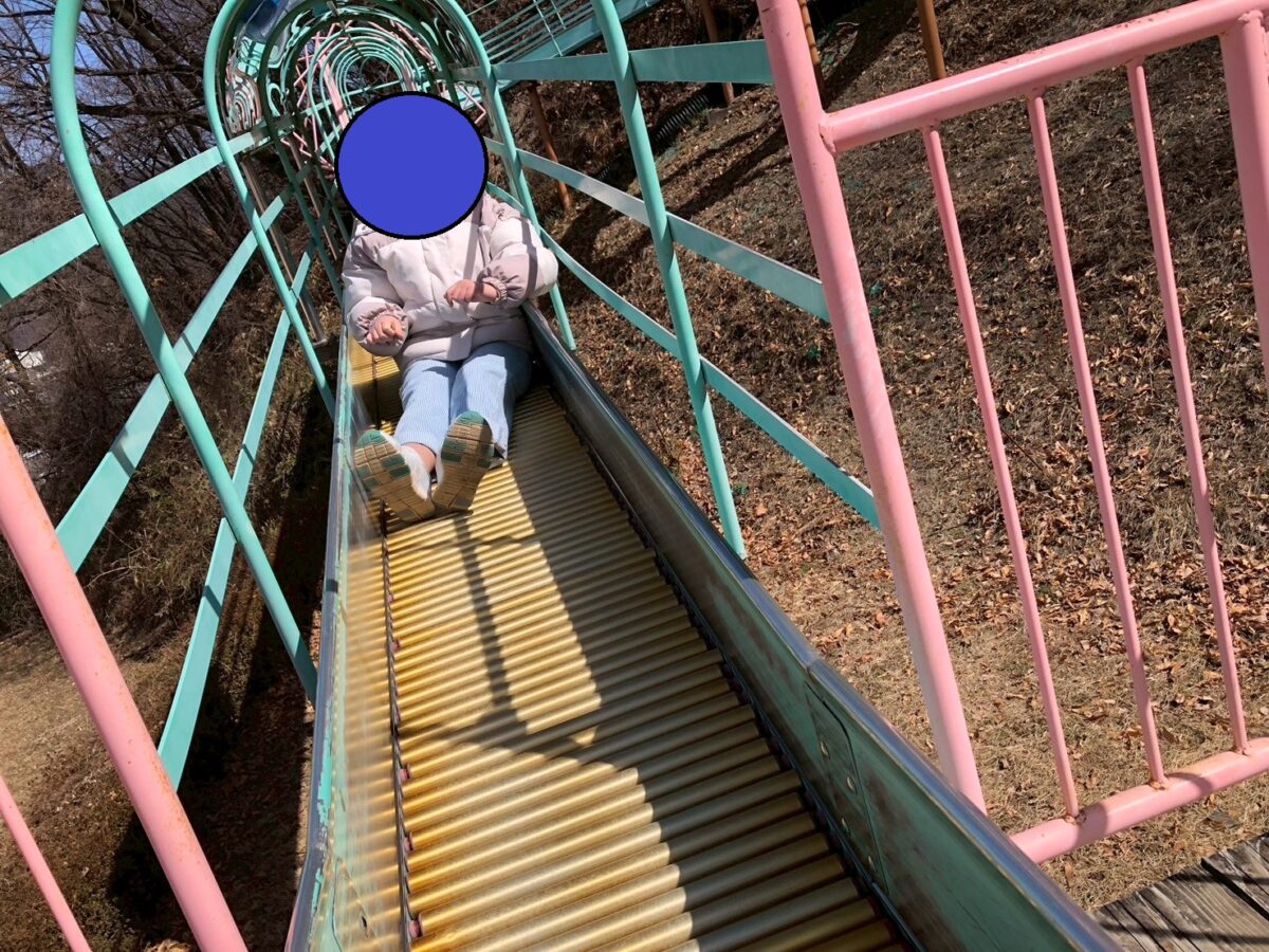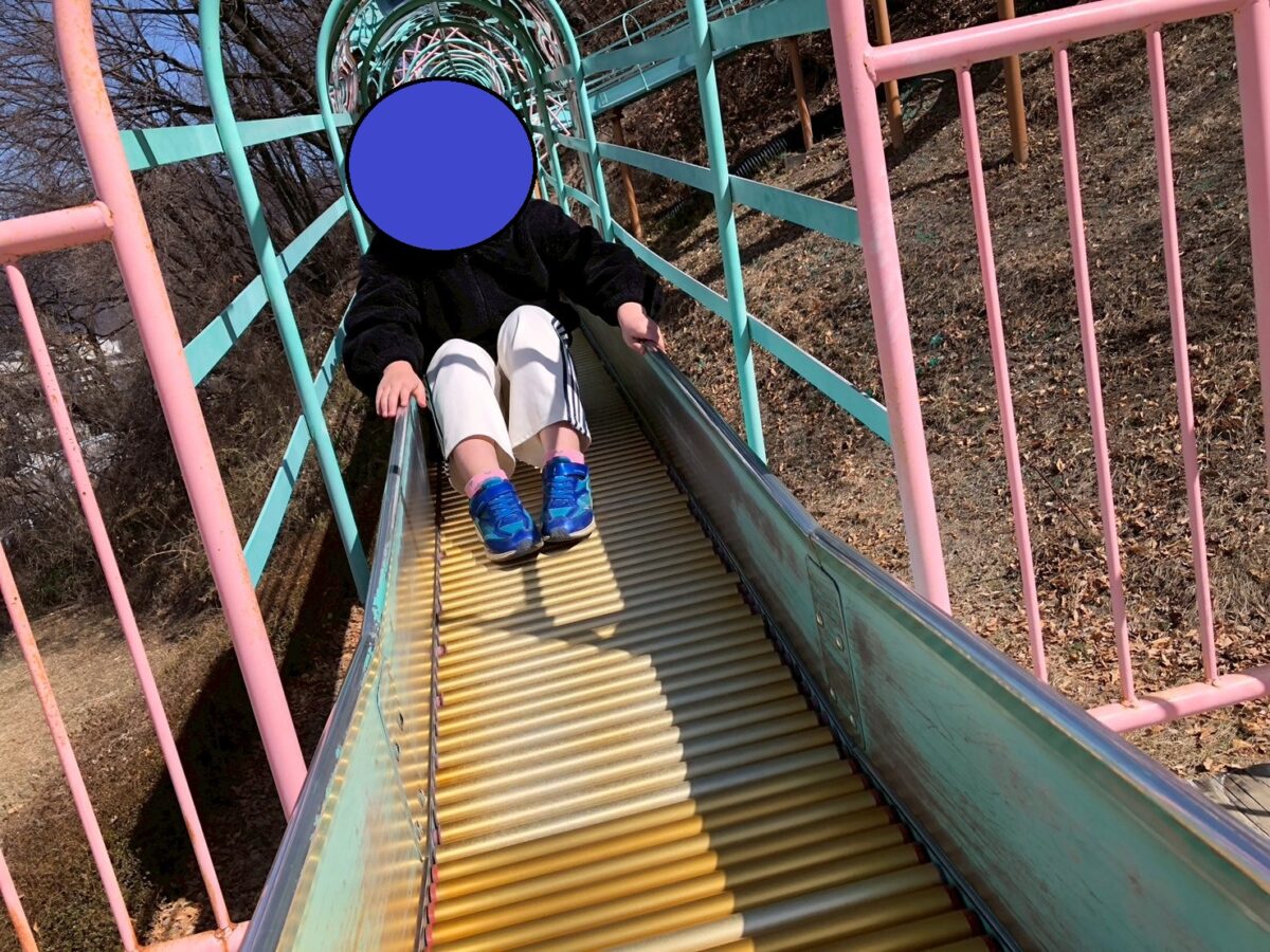 「久しぶりだね!」と話しながら、滑り台にまっしぐら!