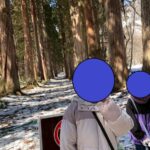 到着するとそこはまだ雪の世界。澄んだ空気の中、雪の参道を滑らないよう注意しながら進みます。