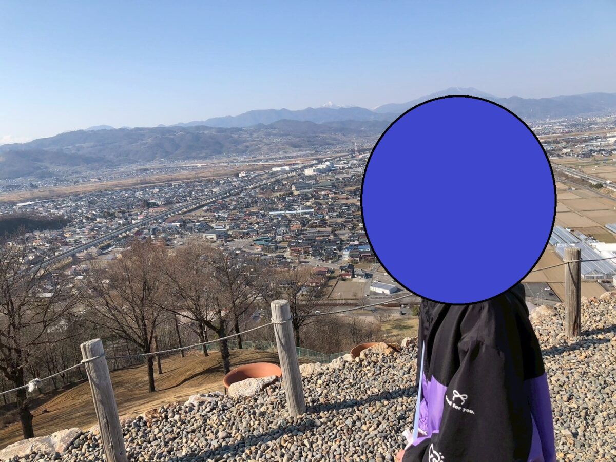 息を切らしながら登り切った先には、千曲市~千曲川~篠ノ井方面の大パノラマ!