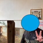 なぜかタヌキの柵には近づくことが出来たため、ピースで記念写真。