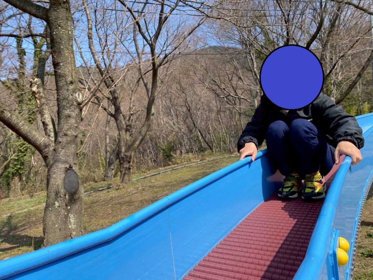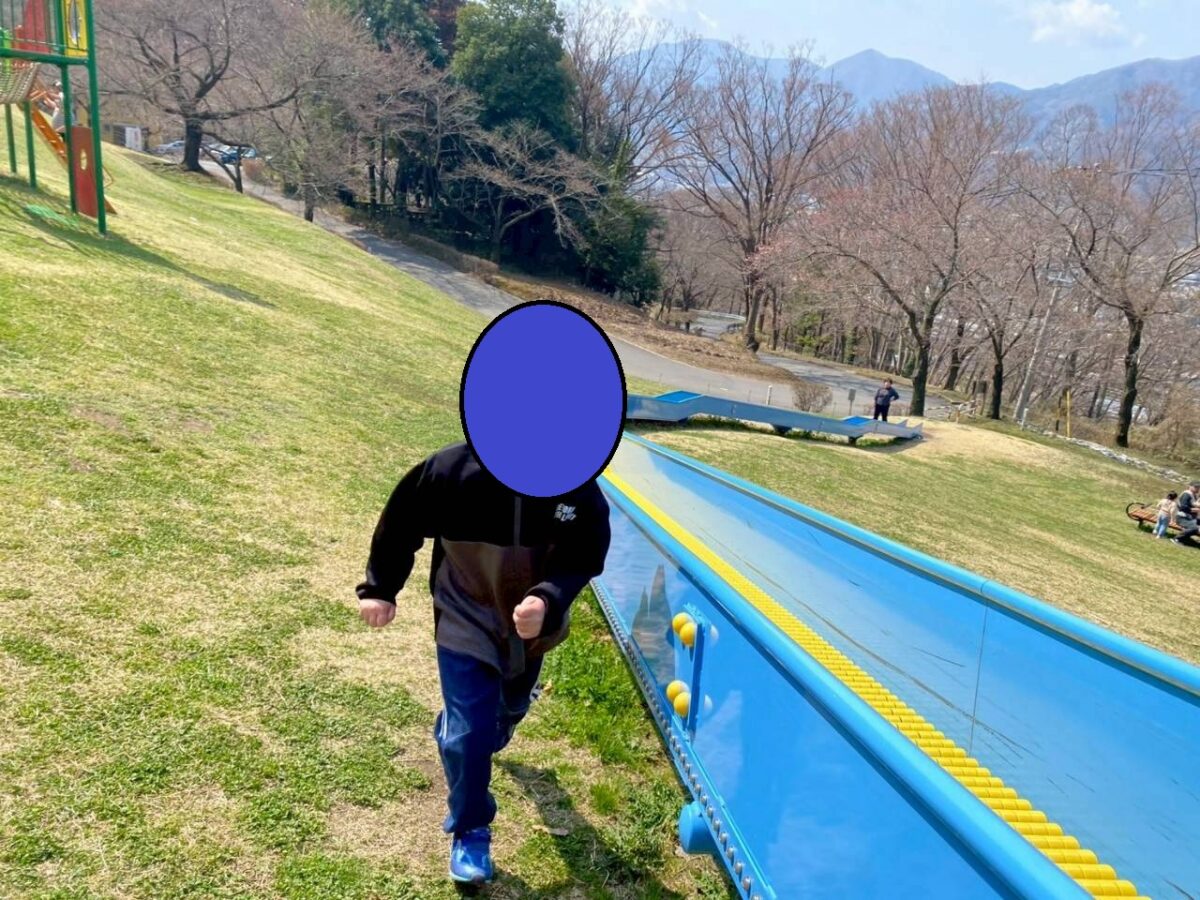 長いローラー滑り台を滑り降りては坂を駆けあがる子