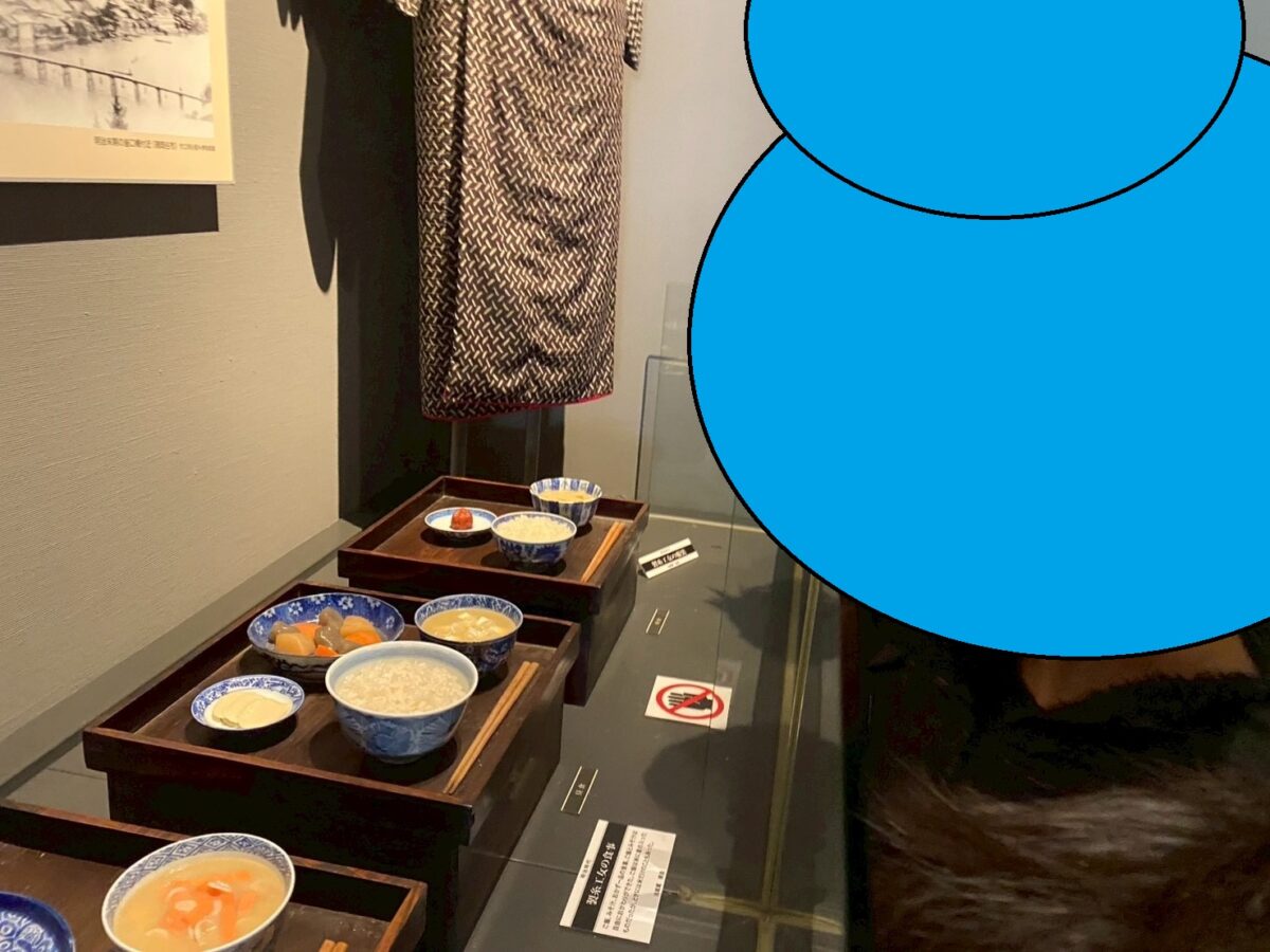 特に大きな反応があったのが、明治~昭和のエリア。食べるものは少し似ているけれど、量が少し少ない…そんな当時の食事を見て思わず「少なっ!」とつぶやく子どもたち。