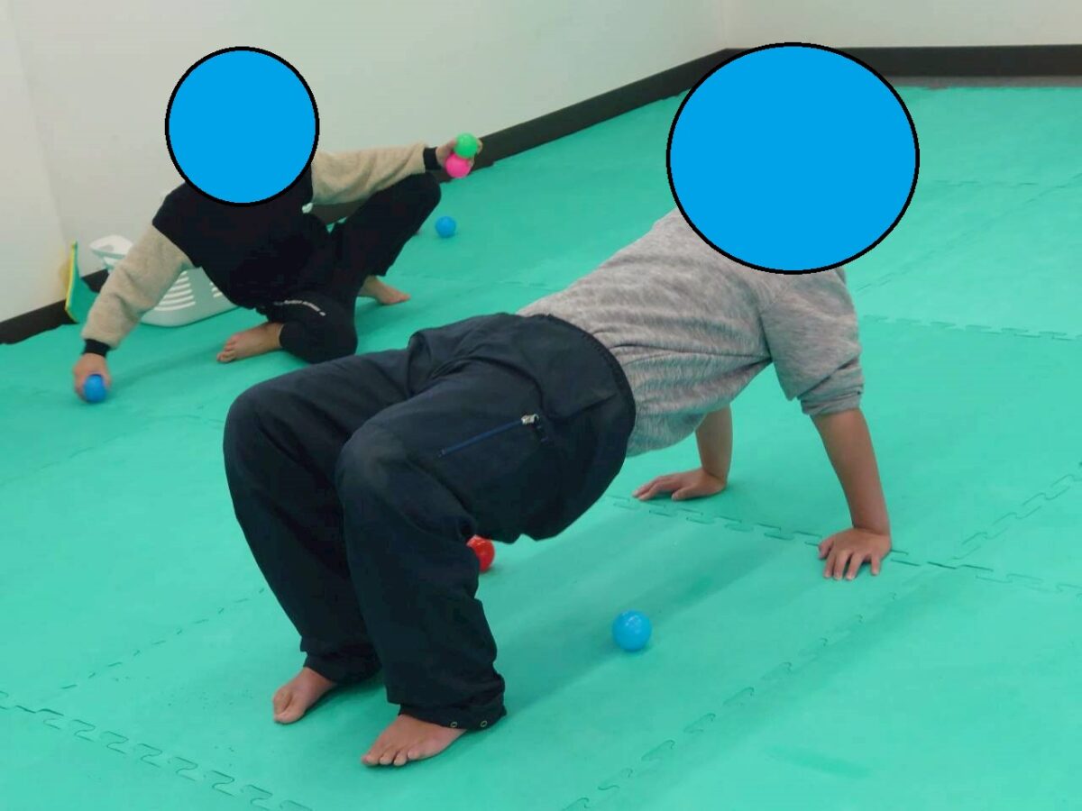 次から次へと転がってくるボールに翻弄されているのは、お尻を上げる動きをしている子だけではなかったようです。
