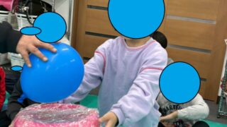 運動遊び①ラップの張ったラケットで風船をぽんぽんしながらグールっと回ってゴール!風船がふわふわするので、なかなかコントールが難しかったのですが、どんどん上達して風船を落とさず運ぶことができるようになりました。 運動遊び②枠の中に入っているボ...