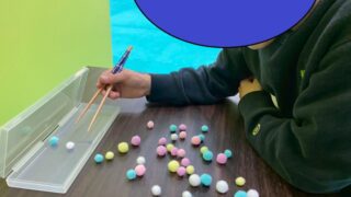 今週の運動遊びは「箱の中身はなんだろな」。意味はそのまま、手を入れて箱の中身を当てていくという内容です。始めによ~く箱の中に入れるものを触って、感触を確かめます。視覚情報を頼りにせず、触った感触を大切に。手のひらや指先の細かな感覚が重要にな...